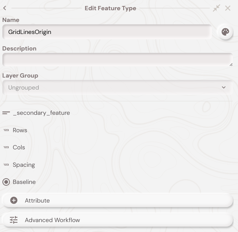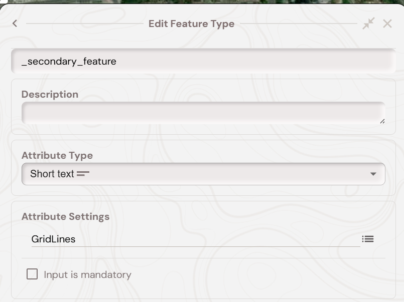 A short text attribute of name ‘_secondary_feature’ with a default value of ‘GridLines’ like below: