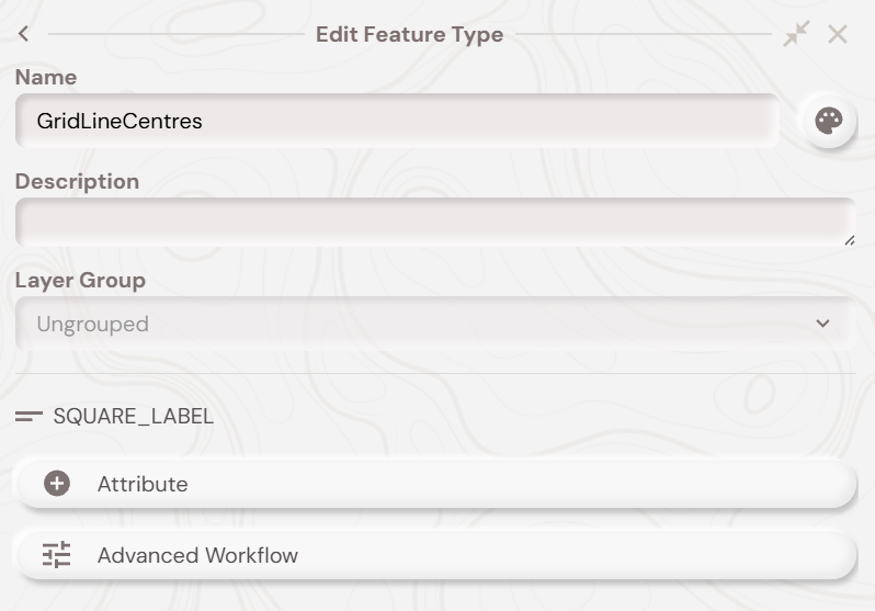 You must setup a point feature type of the name ‘GridLinesCentres’ in a given project. You then must create a short text attribute of the name ‘SQUARE_LABEL’, so your feature type should look like below: