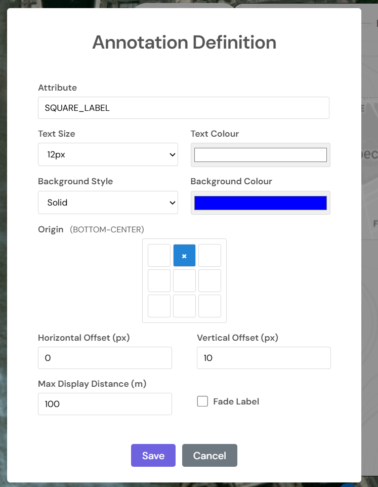 Then, ensure the ‘Attribute’ textbox is filled with ‘SQUARE_LABEL’. The other options you can choose whatever you wish. A good starting point is shown below: